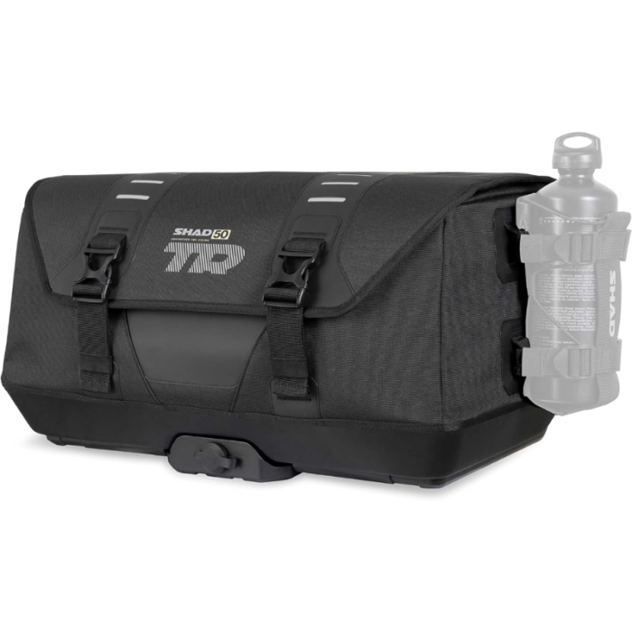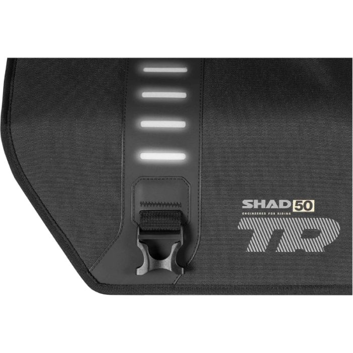 Mochila de carga TERRA TR50 de 40 litros de capacidad para dos cascos completos y hasta 10 kg de carga que destacan por su sistema de acoplado bloqueable que le permite fijar y liberar en cuestión de segundos.Diseñada en Barcelona como prosecución del diseño del concepto TR90, ganadora del premio IF AWARD 2021 y premio ABC AWARDS 2021.Construido de material muy resistente reforzado en costuras y base reforzadas.El TR50 tiene un plus de funcionalidad a través de sus 8 puntos de reforzado (sistema MOLLE) que pueden ser unidos para conectar trajes de equipaje adicionales.Hecho de materia que responde a las normativas medioambientales REACH y OEKO-TEX Standard 100 de resistencia de 1.000 horas a la acción de los rayos UV. Se vende con funda impermeable.En plus d’assurer une conduite sport to-road, profitant de sa légèreté, le TR50 procure un avantage de praticabilité par ses 8 appuis renforcés (système MOLLE) qui permettent de rattacher un(e)(s) accessoires de baggage complémentaires.Además, para reducir su volumen semirrígido pueden ser retirados dos paneles interiores desde sus laterales.TR50 Key and Keyway Block Cylinder is the definitive high-end version of SHAD, a mechanism that reduces theft possibilities to a minimum and incorporates a cover to protect the cylinder from dust.Straps all have mosquetones at ends to avoid loose cabos.Algunos de ellos inclusive poseen asa de transporte, cinta para el hombro y refulentes para ser más visible.Instalación de un kit de fijación SHAD y placas de montaje (no están incluidas).Tres opciones de placa de montaje: placa grande SHAD (D1B591PA), aluminio (D1BTRPA) o aluminio negro (D1BTRPA2).Accesorios (no incluidos): portabotellas (X1TR05) y bolsa impermeable (X1TR03)