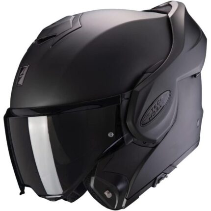 El Scorpion Exo-Tech Evo Solid Matt Negro Casco Modular es un casco de motocicleta versátil y seguro diseñado para brindar