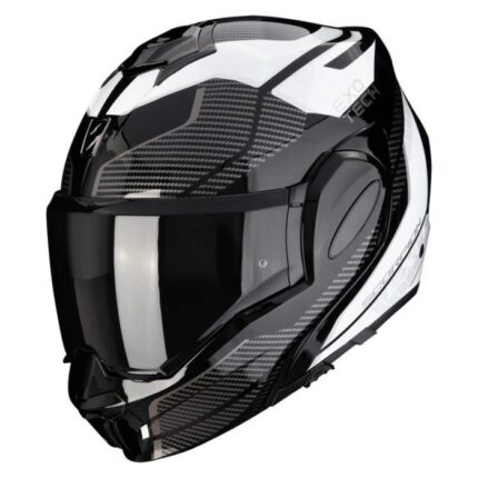 El Scorpion EXO-Tech Evo Animo Casco Modular Negro Blanco es un casco de motocicleta diseñado para brindar protección y comodidad